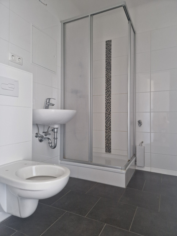 Die vor Anmietung komplett neu sanierte 1-Zimmerwohnung befindet sich in der 3. Etage des Wohnhauses und ist über das Treppenhaus erreichbar. Das neu geflieste Badezimmer wird mit einer Dusche sowie einem Handtuchheizkörper ausgestattet. Die frisch Raufaser weiß renovierten Wohnräume erhalten einen hochwertigen Design Bodenbelag sowie neue weiße moderne Innentüren. Die Elektroanlage wird ebenfalls nach heutigem Standard erneuert. Für die Wohnung steht ein Kellerraum zur Verfügung. Garagen können nach Verfügbarkeit angemietet werden.